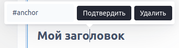 Затем во всплывающем окне указываем текстовый идентификатор якоря (уникальный для статьи, латинские буквы и цифры, без пробелов)